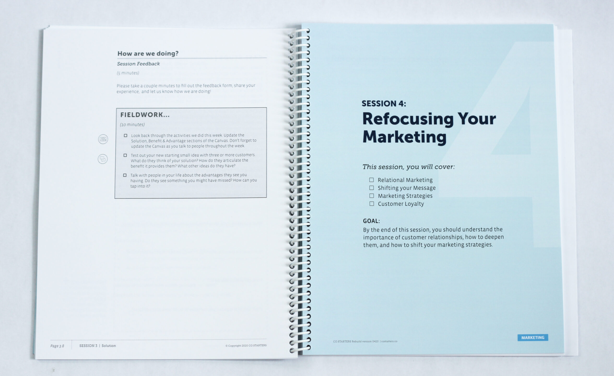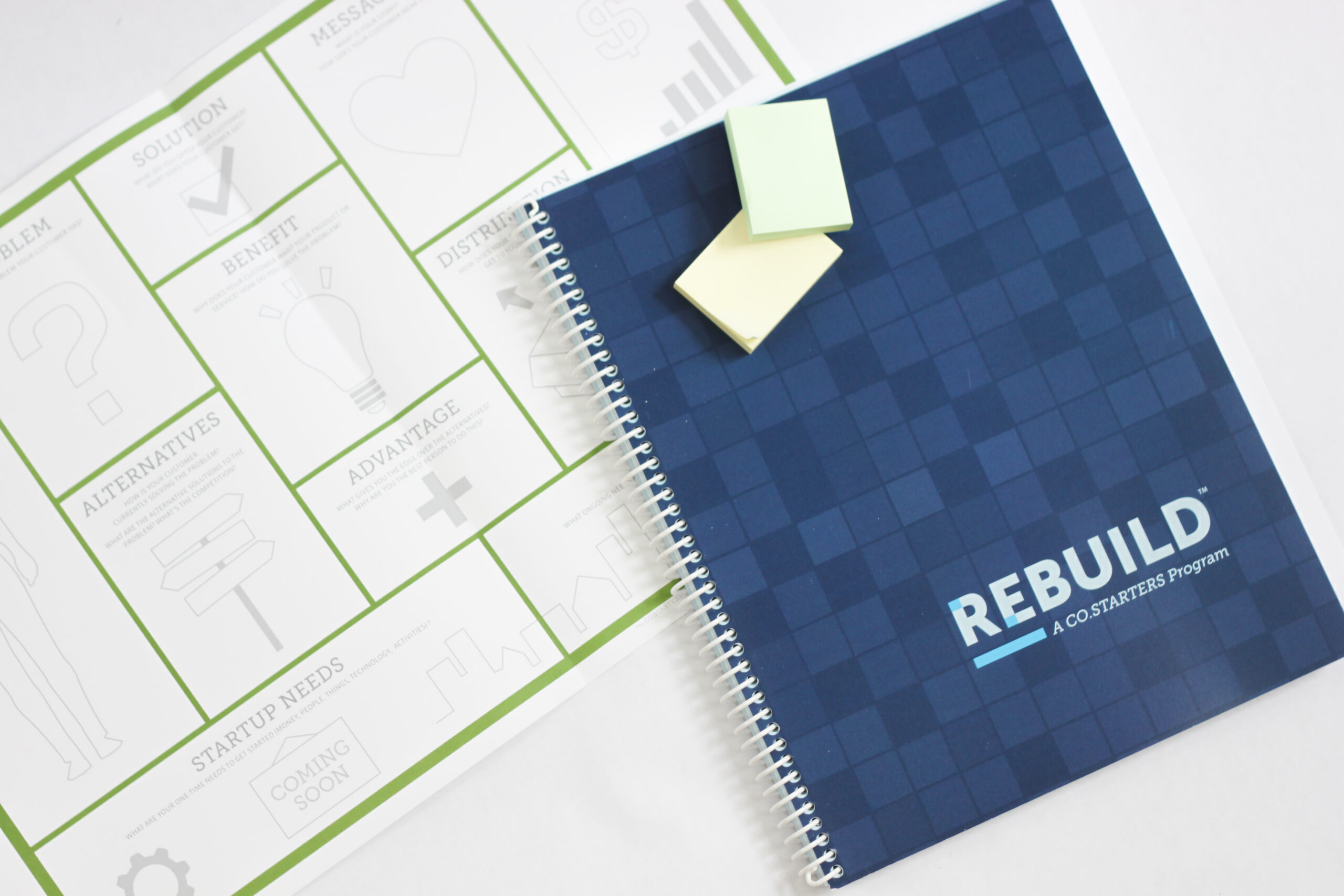 Get all the physical companion materials you need for one cohort of participants in the 10-week Rebuild program. This kit includes 10-16 Rebuild Participant Workbooks packaged with a CO.STARTERS Canvas, sticker, pen, and sticky notes.